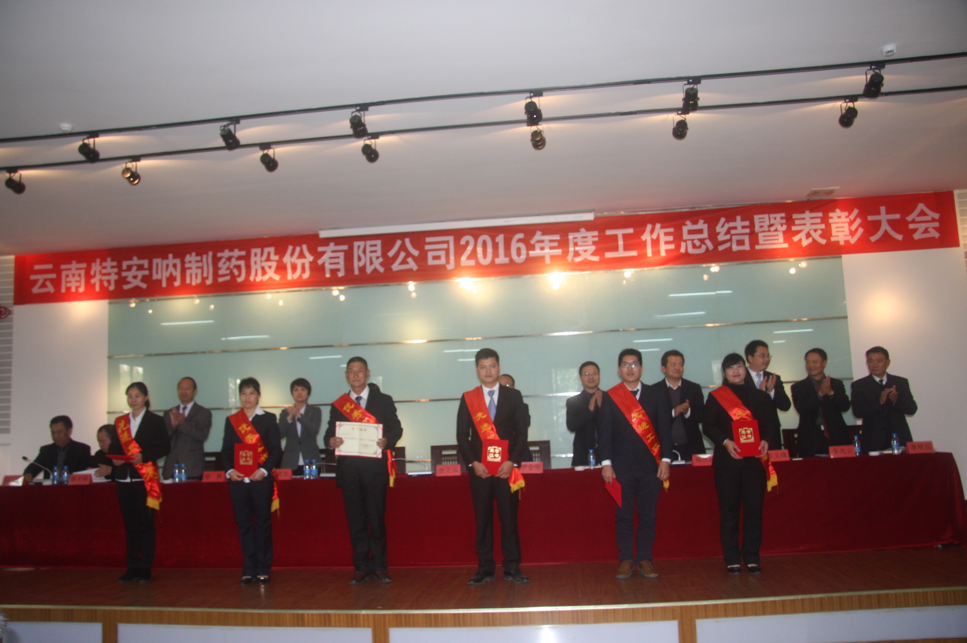 2017年1月17日,特安吶公司召開2016年度年終會暨表彰大會。大會在雄壯、豪邁的《特安吶之歌》歌聲中開始,全體參會人員高唱《特安吶之歌》,昂揚奮進的旋律、大氣磅礴的歌詞讓人斗志昂揚、催人奮進。2016年可以說是特安吶公司發(fā)展路程的“低潮年”,但全體特安吶人在云南城投集團和云南三七科技公司的領(lǐng)導下,在公司管理團隊和全體員工的共同努力下,積極應(yīng)對、探索出路、尋求在困難中求生存,在逆境中求發(fā)展,基本完成了各項任務(wù)。羅金明總經(jīng)理在工作報告中對2017年的工作作出了安排部署,要求全體特安吶人繼續(xù)發(fā)揚“自力更生,積極奮發(fā)、銳意進取,堅韌不拔”的精神,把特安吶做強做大。同時,在過去的一年中,也涌現(xiàn)出了一批優(yōu)秀員工,他們邁著整齊的步伐走向領(lǐng)獎臺,從領(lǐng)導手中接過屬于他們的榮譽,這是對他們付出辛勤勞動的肯定,臺下掌聲雷動,向他們學習、向他們致敬!一年的歡聚就在這一天,18時,期盼已久的“我的夢、企業(yè)夢、中國夢——同心同行、共創(chuàng)未來”2017年春節(jié)聯(lián)歡晚會拉開帷幕,公司中層以上領(lǐng)導干部齊聲高唱《特安吶之歌》,為晚會拉開一個小高潮,員工自編自導自演的節(jié)目一個接著一個,一個比一個精彩,員工們在大飽口福的同時也大飽眼福,現(xiàn)場抽獎、微信紅包穿插其中,讓員工們熱情高漲,領(lǐng)導為員工群發(fā)去一個個充滿溫馨的紅包,大家只有一個字“搶”,搶到的眉開眼笑,搶不到的感嘆手機運行速度太慢,大家其樂融融,歡聲笑語回蕩在大廳里,當主持人宣布明年再相聚的時候,大家還沉浸在回味中、歡樂中、幸福中,歡樂的時間總是很短,明天我們又將迎來新的征程,讓我們高舉三七產(chǎn)業(yè)發(fā)展的大旗,做一個紅土地上奮力拼搏的好兒郎,同心同行、共創(chuàng)未來!