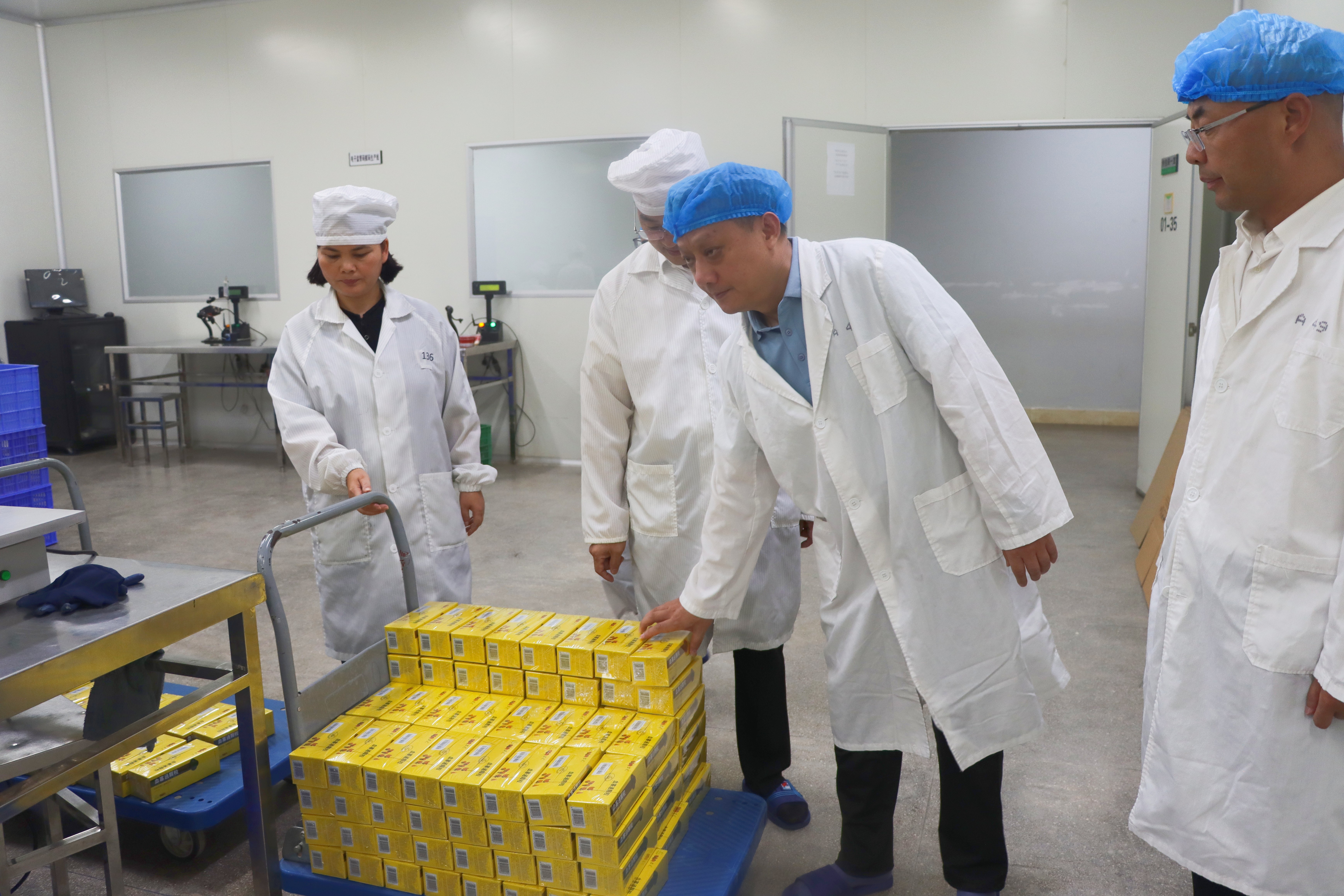 黃波分別來到原料倉庫、成品倉庫、綜合包裝車間、制劑車間,深入了解產(chǎn)品存放、設(shè)備運(yùn)行、安全生產(chǎn)、人員管理等情況,并聽取了相關(guān)負(fù)責(zé)人對(duì)現(xiàn)場管理、生產(chǎn)工藝、質(zhì)量管理等方面情況介紹。