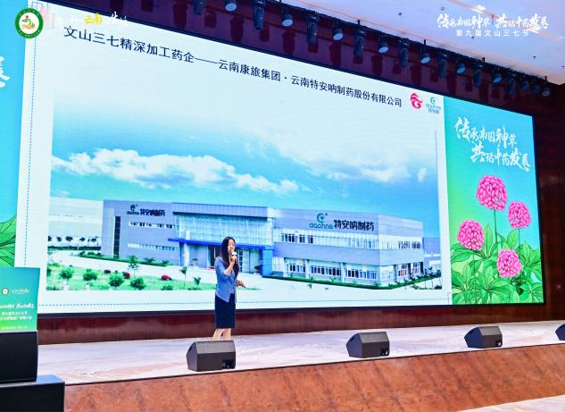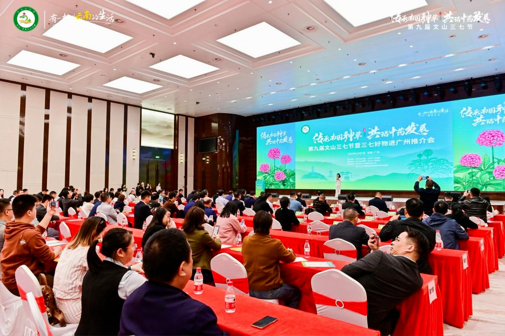 12月7日,由中共文山州委、文山州人民政府主辦,中共文山市委、文山市人民政府承辦,文山州三七中醫(yī)藥發(fā)展中心及相關企業(yè)協辦的“三七好物進廣州”推介會在廣州國際醫(yī)藥港成功舉辦。文山州委常委、市委書記蔣俊率文山市黨政代表團參加此次推介活動,特安吶公司黨支部書記、副董事長、常務副總經理鄒慧寧作為代表團成員參加活動并作為企業(yè)代表作三七系列產品推介。