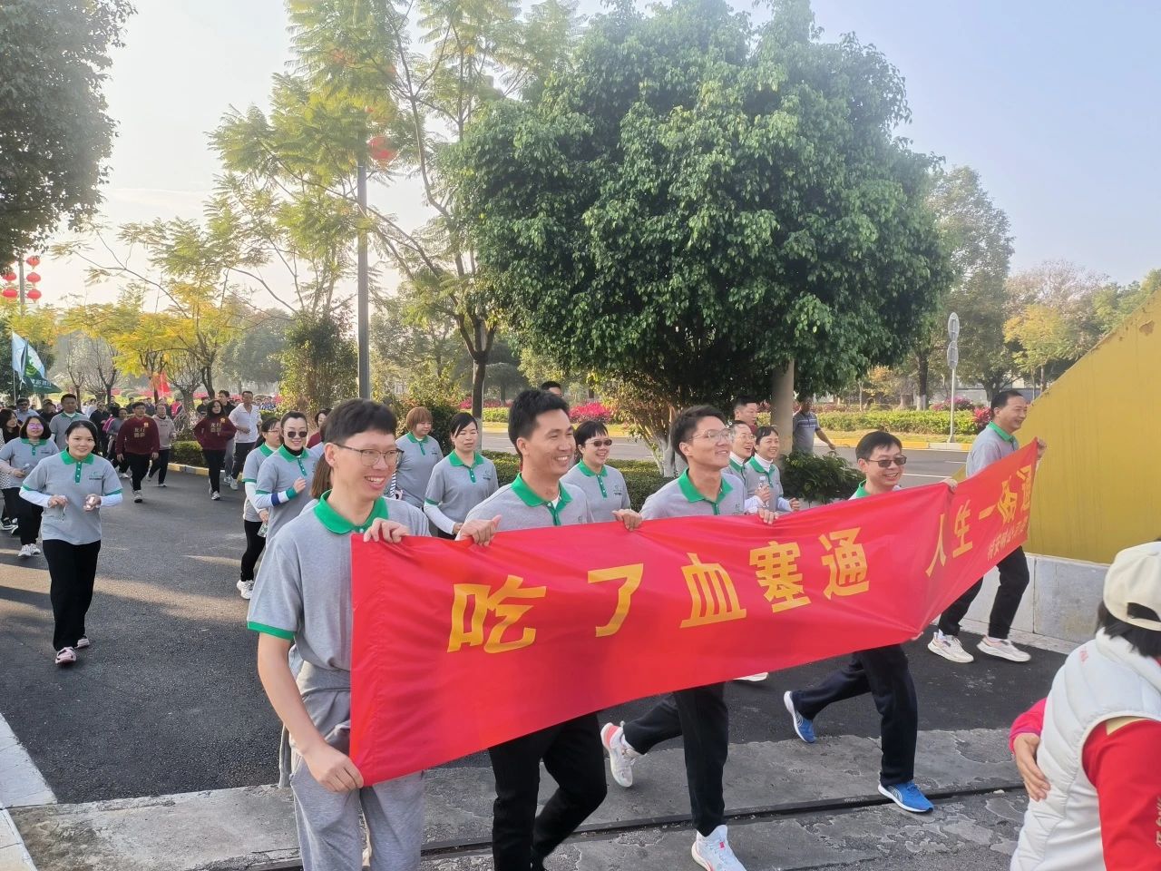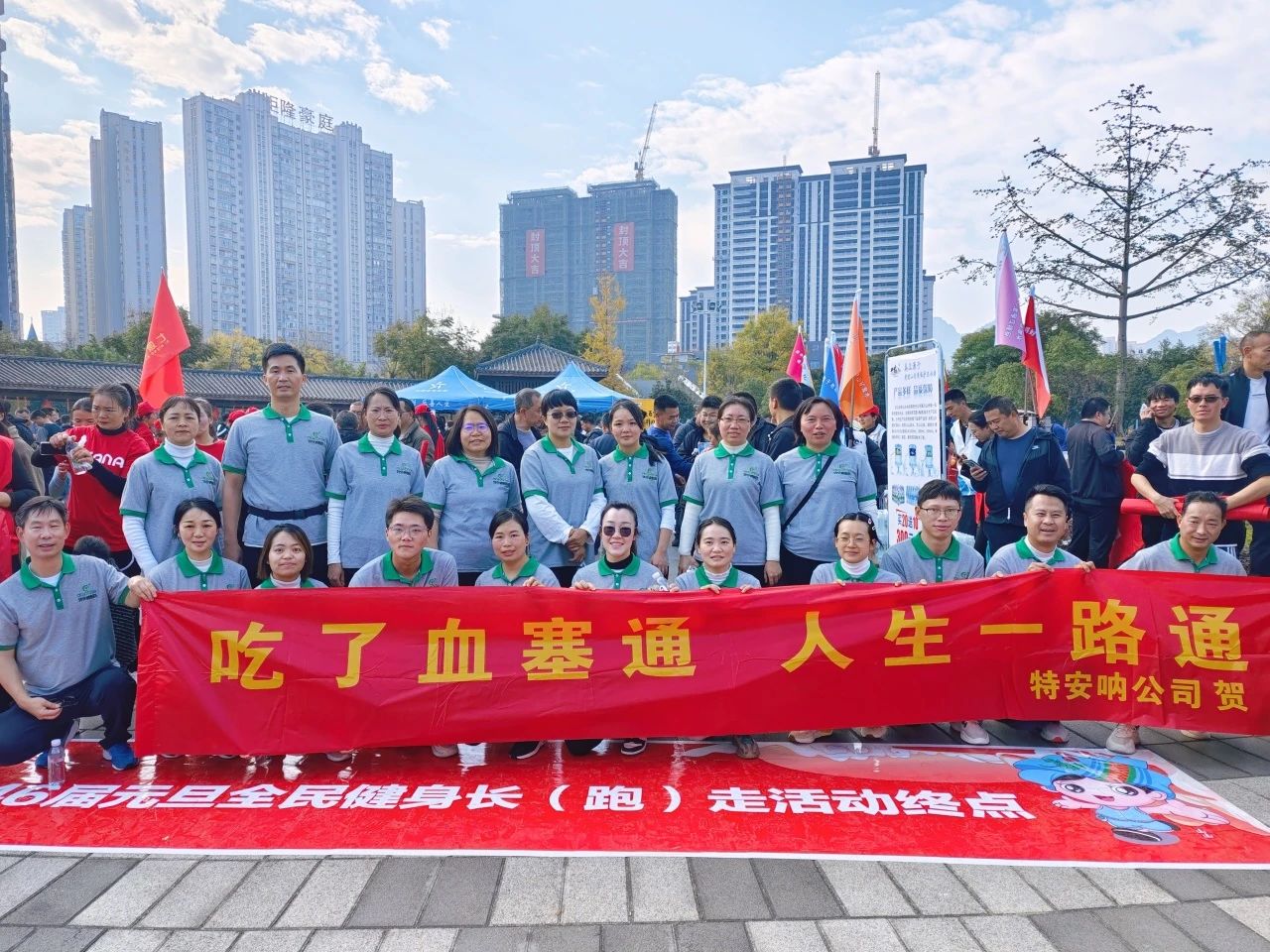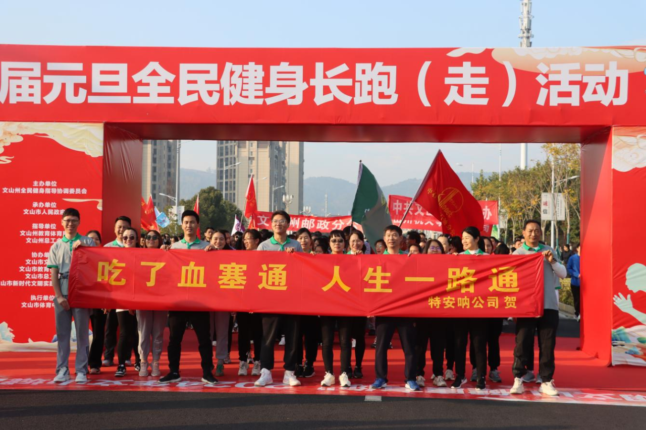 9時(shí)整,隨著發(fā)令槍響起,活動(dòng)正式開始。特安吶公司參跑干部職工懷揣對2024年的躊躇滿志和憧憬希望,闊步向前、意氣風(fēng)發(fā),整齊劃一的高喊“吃了血塞通,人生一路通”的口號,一路引得參跑人員的連連贊許。